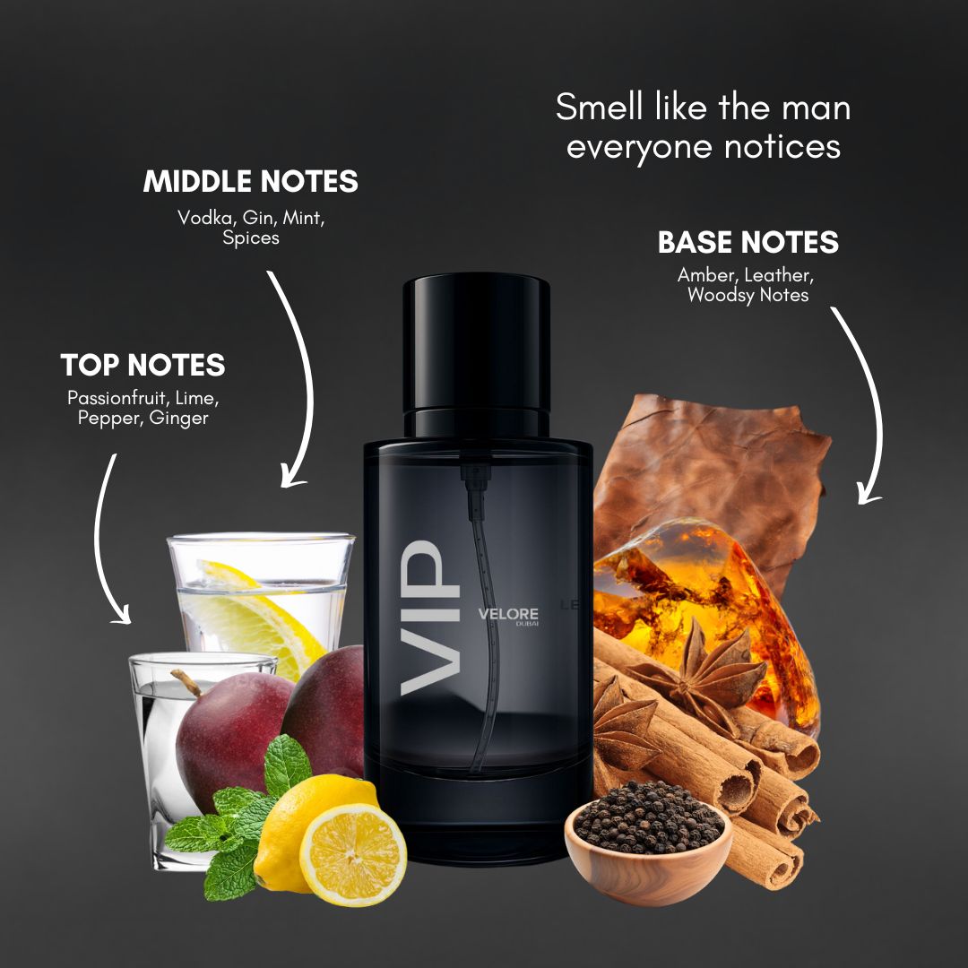 VIP is a fragrance that embodies confidence, style, and the energy of a man who knows his worth. Picture yourself stepping into a party, the music pulsing, eyes turning as you walk past—there’s something magnetic about you, and this fragrance is part of it.