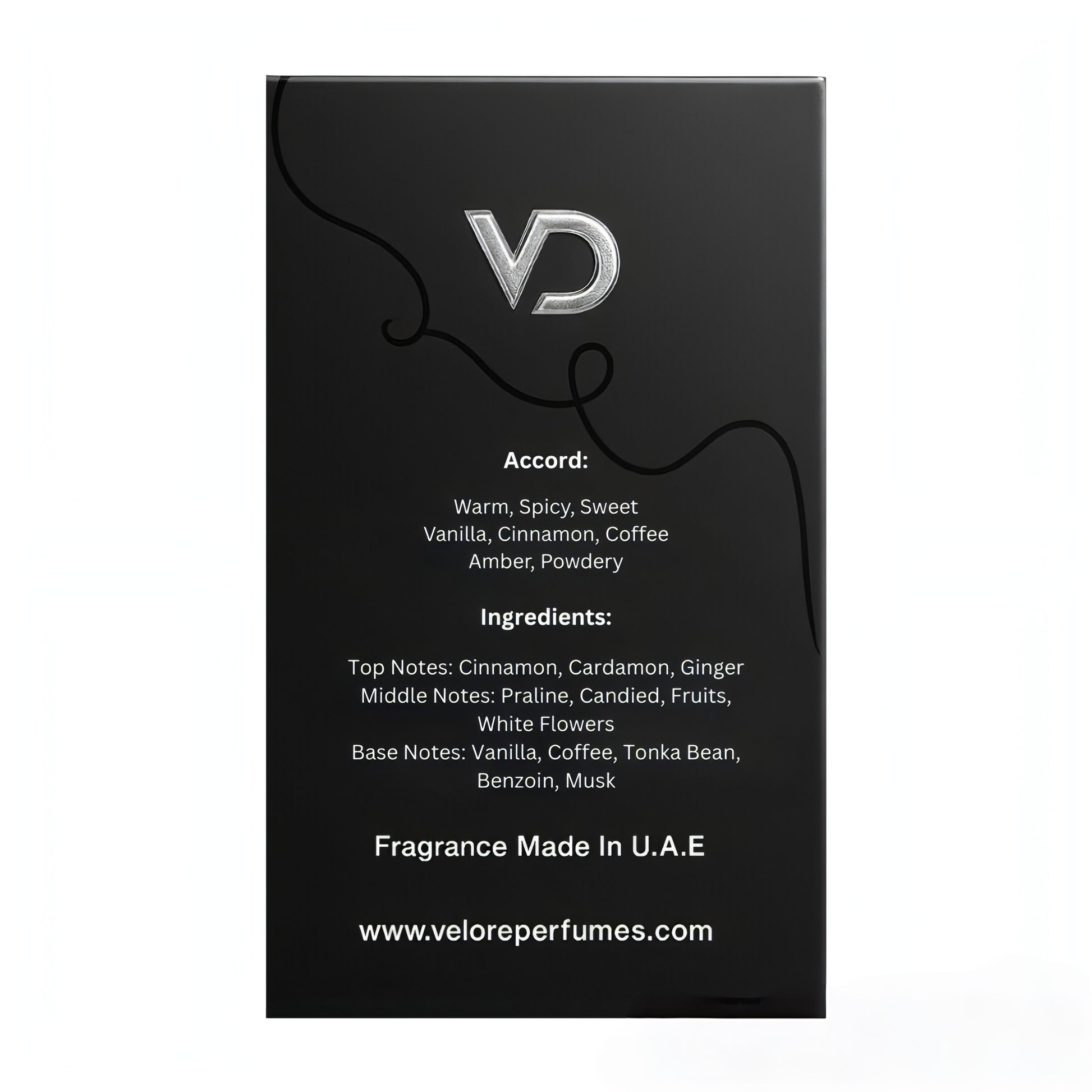 As the scent settles, smooth notes of dark coffee powder blend seamlessly with aromatic spices and woody undertones — giving it a deep, sensual warmth that wraps around like a tailored leather jacket. A soft whisper of cocoa and caramel adds a subtle sweet-smoky elegance — seductive without being loud, refined yet rugged.